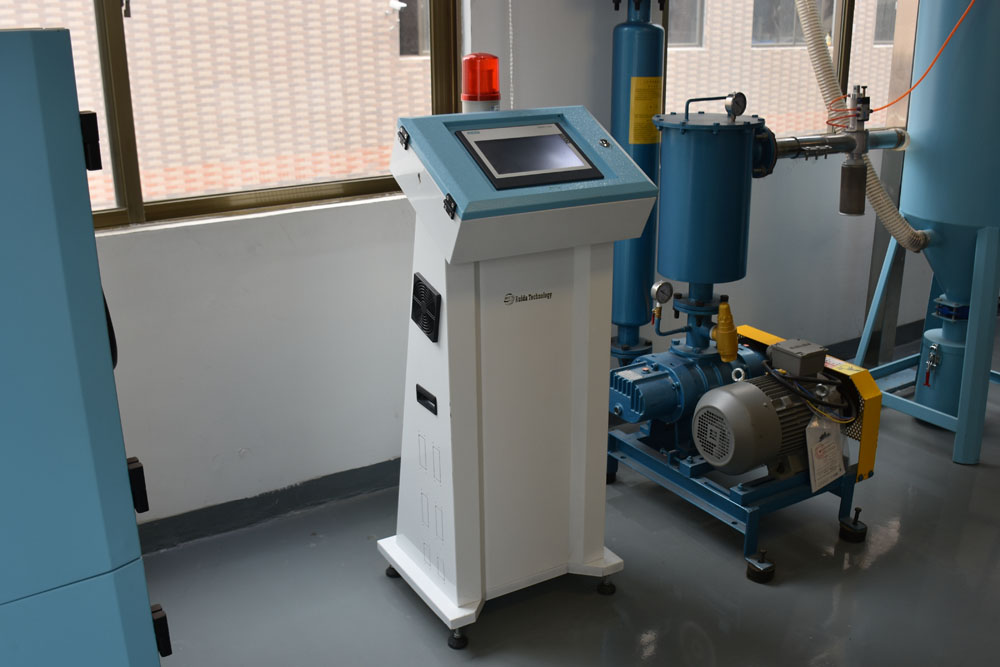 中央供料系統(tǒng)是為注塑車間的塑料產(chǎn)品生產(chǎn)而設(shè)計(jì)的,實(shí)現(xiàn)了不間斷無(wú)人化連續(xù)成型作業(yè)??筛鶕?jù)需要改變?cè)掀贩N、多顏色材料的組合使用方式,實(shí)現(xiàn)著色工序的自動(dòng)化。系統(tǒng)能夠以全自動(dòng)方式再生和使用注口冷料,能夠?qū)λ泄┝显O(shè)備的控制,并防止了儲(chǔ)料倉(cāng)內(nèi)阻塞現(xiàn)象的發(fā)生,通過(guò)設(shè)置中央監(jiān)控臺(tái)實(shí)現(xiàn)全自動(dòng)化。